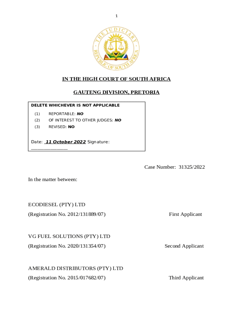 1IN THE HIGH COURT OF SOUTH AFRICA GAUTENG DIVISION, PRETORIA DELETE WHICHEVER IS NOT APPLICABLE (1)REPORTABLE: NO(2)OF INTEREST TO OTHER JUDGES: NO(3)REVISED: NODate: 11 October 2022 Signature: ___Case
