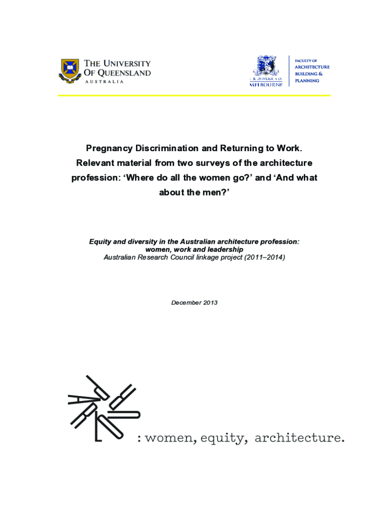 Pregnancy Discrimination and Returning to Work. Relevant material from two surveys of the architecture profession: Where do all the women go? And And what about the men? Equity and diversity in the