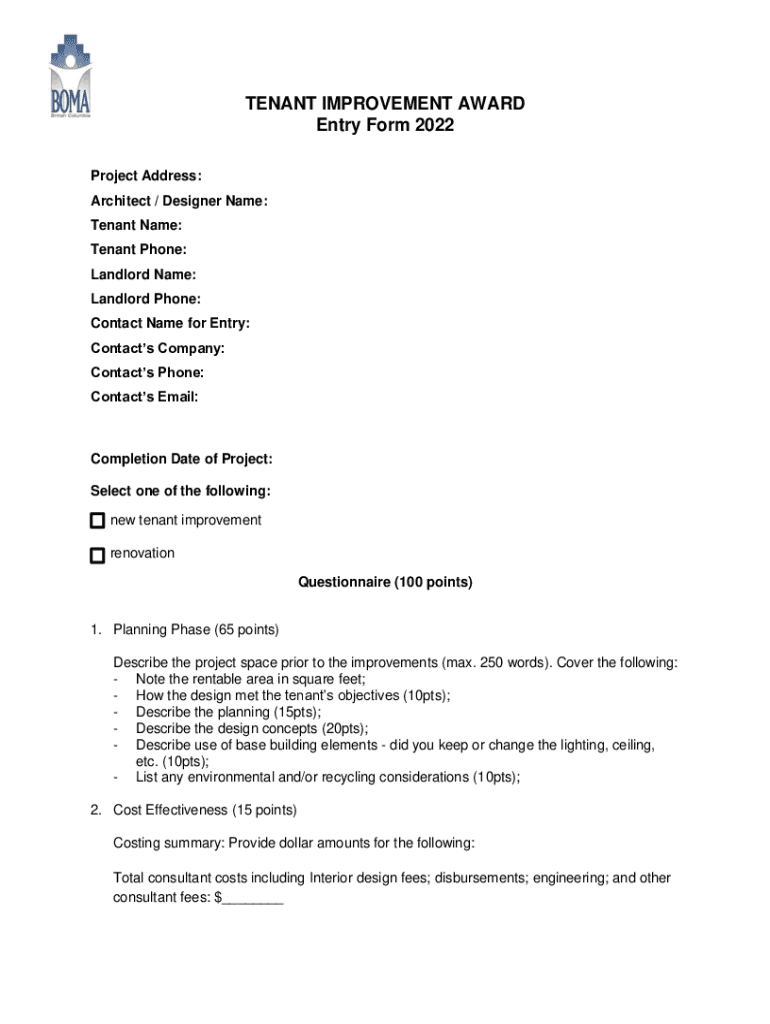 Get the free TENANT IMPROVEMENT AWARD Entry Form 2022