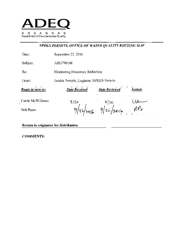 ARKANSASDepartment of Environmental QualityNPDES PERMITS, OFFICE OF WATER QUALITY ROUTING SLIP