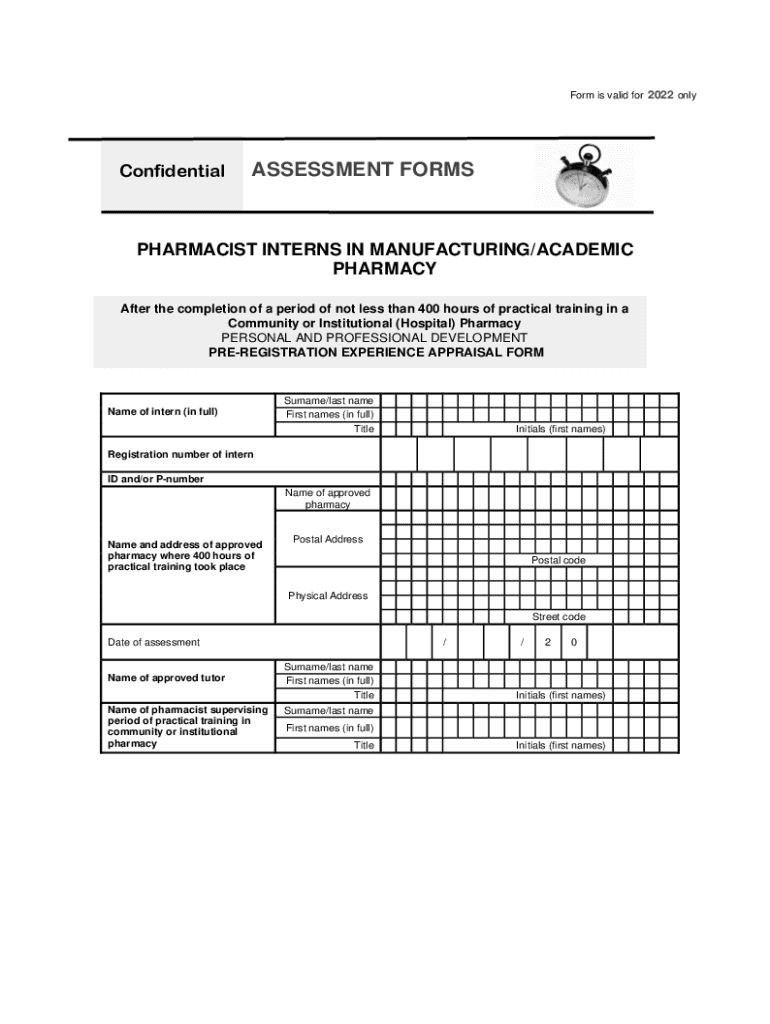 Form is valid for 2022 onlyConfidentialASSESSMENT FORMSPHARMACIST INTERNS IN MANUFACTURING/ACADEMIC