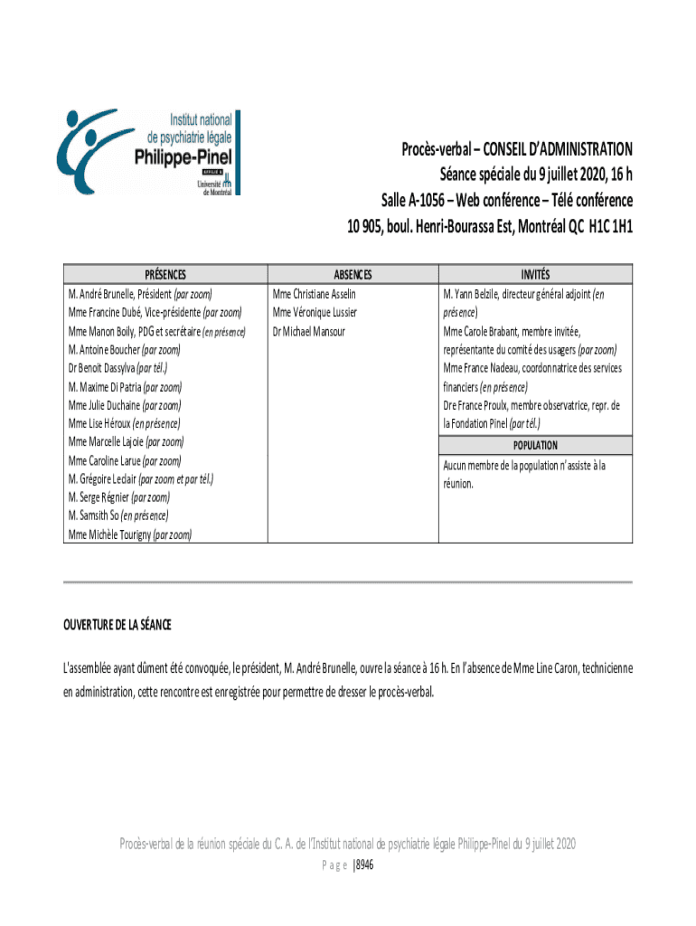 Obtenir le gratuit Procs-verbal CONSEIL DADMINISTRATION - pinel qc