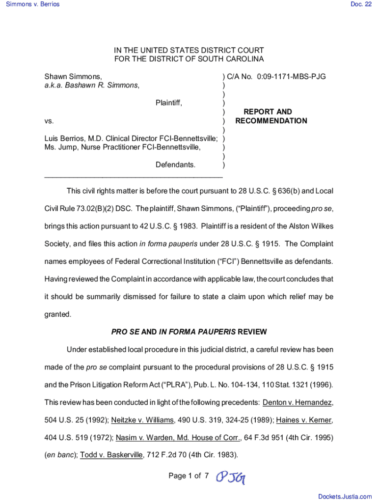 Simmons v. BerriosDoc. 22IN THE UNITED STATES DISTRICT COURT