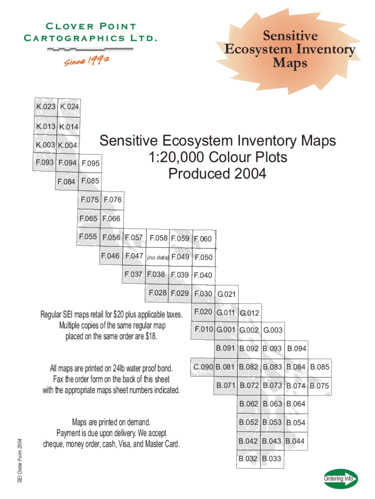 Clover Point Cartographic Ltd. Sensitive Ecosystem Inventory Maps.023 K.024 K.013 K.014 K.003 K.004 F.093 F.094 F.084Sensitive Ecosystem Inventory Maps 1:20,000 Color Plots F.095 Produced 2004 F.085