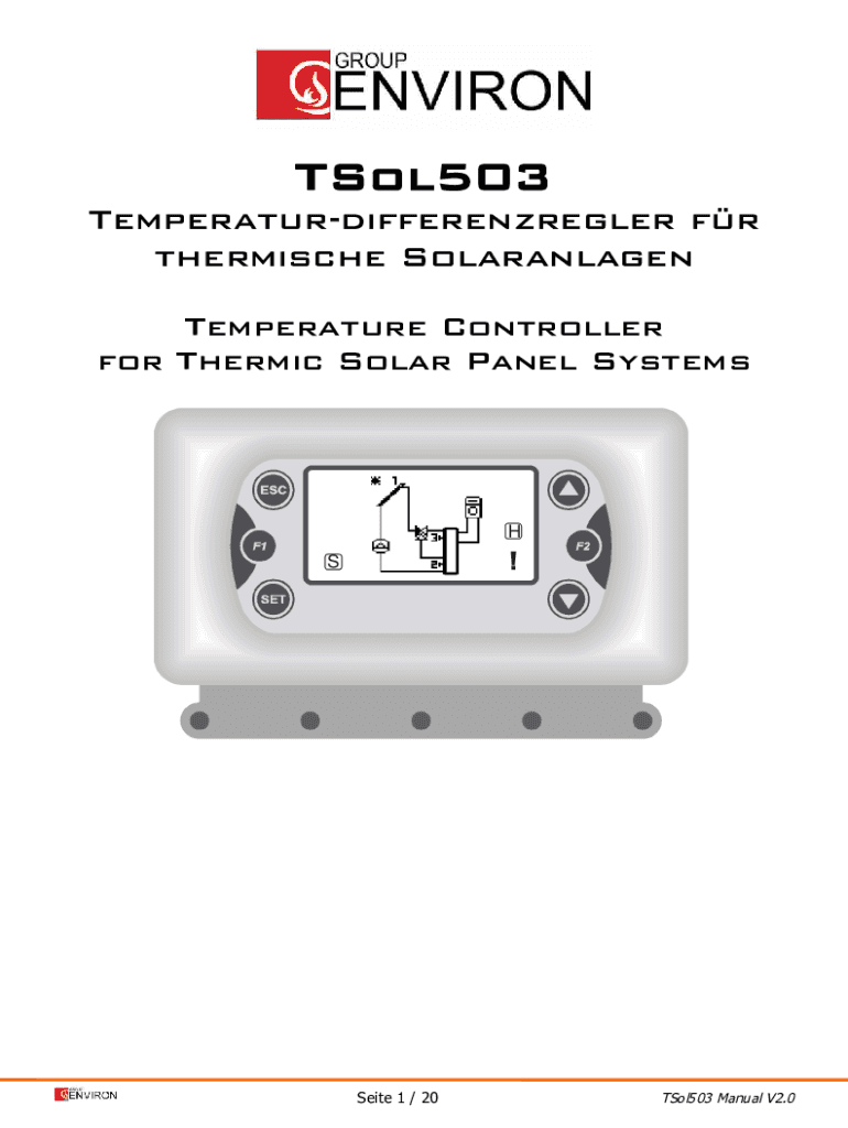 TSol503 Temperaturdifferenzregler for thermistor Solaranlagen Temperature Controller for Heroic Solar Panel Systems State 1 / 20TSol503 Manual V2.01 Violating Algerian Her Solartemperaturregler TSol503