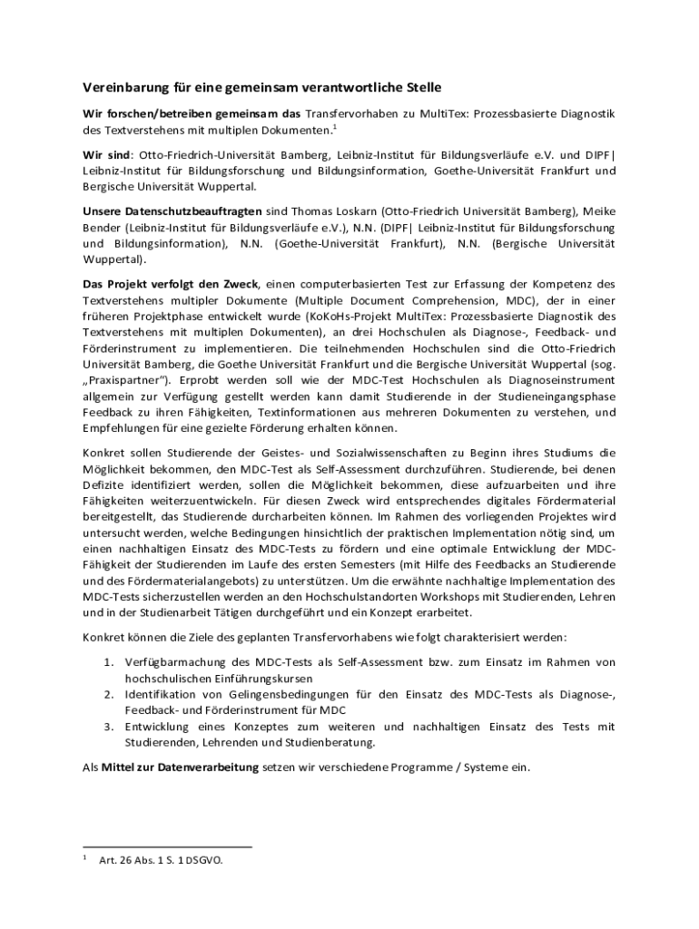 Holen Sie sich kostenlos Vereinbarung fr eine gemeinsam verantwortliche Stelle