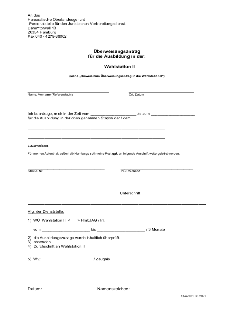 Holen Sie sich kostenlos 12. Antrag auf Zuweisung in die Wahlstation II.docx - justiz hamburg