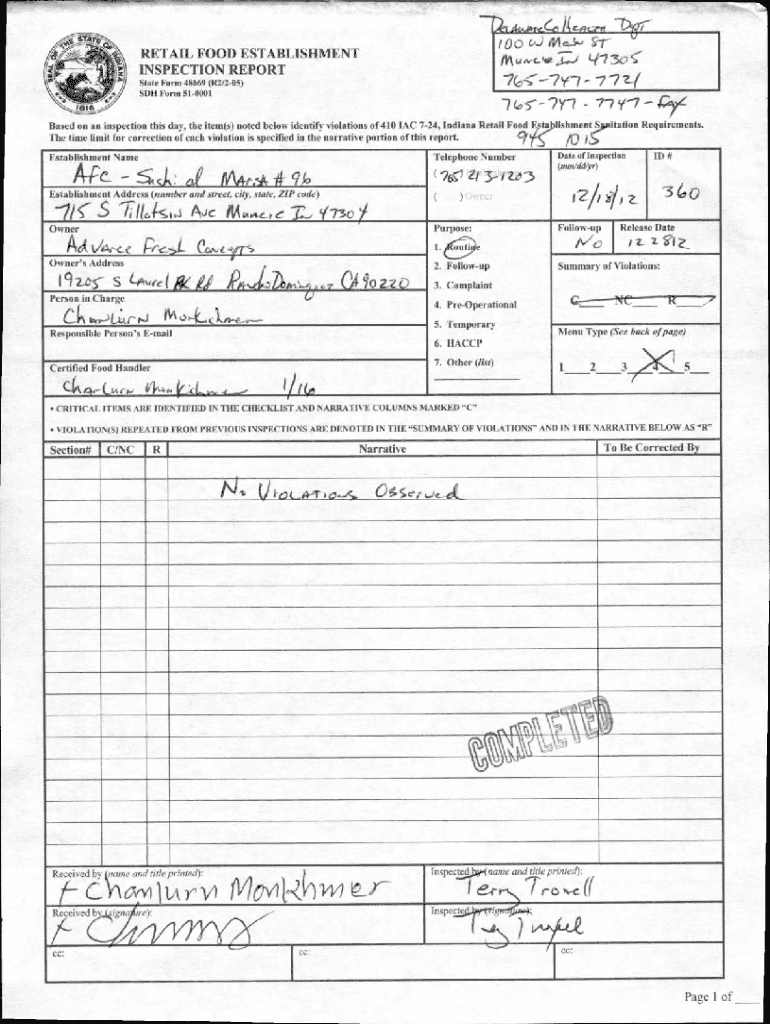 (Al 4. A.4arre Ce ark...7rt /00 (A2) 44aLa 11 1RETAIL FOOD ESTABLISHMENT INSPECTION Reportage Form 48669 (R2/205) SDH Form 510001(57y 7 77Based on an inspection this day, the item(s) noted below identify
