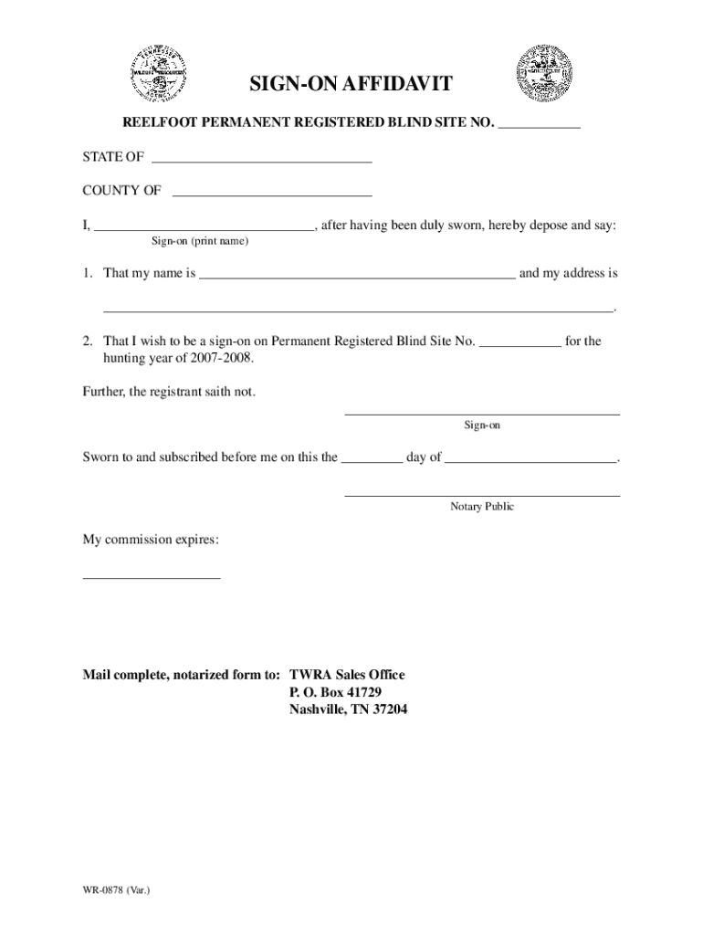 SIGNOR AFFIDAVIT REBOOT PERMANENT REGISTERED BLIND SITE NO. ___ STATE OF ___ COUNTY OF ___ I, ___, after having been duly sworn, hereby depose and say: Signor (print name)1. That my name is ___ and