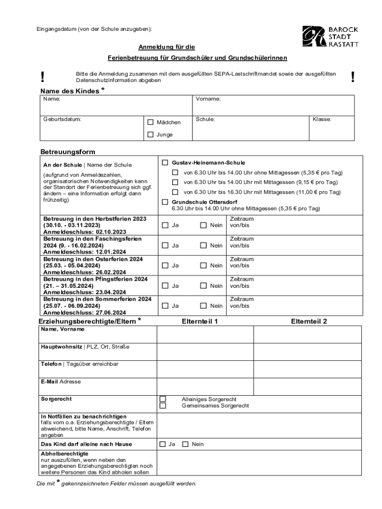 Ferienbetreuung for Grundschler UND Grundschlerinnen! Bitte die Amending dustmen MIT them ausgefllten SEPALastschriftmandat Bowie her ausgefllten