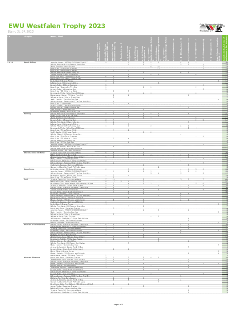 EU Westphalia Trophy 2023ReiningShowmanship At HalterSuperhorseTrailWestern Horsemanship Western Pleasure3352 7 79 4 1 76 2 7 54344 2 65 1 34 3131425 352 723 44 31 3 2 25 2 42 54 5 44 2 65 4 144 5445