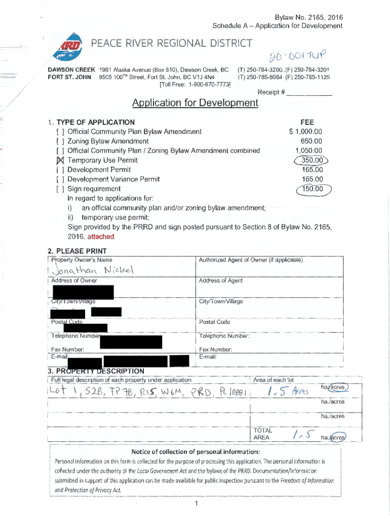 Schedule A Application for Development^jPEACE RIVER REGIONAL DISTRICT