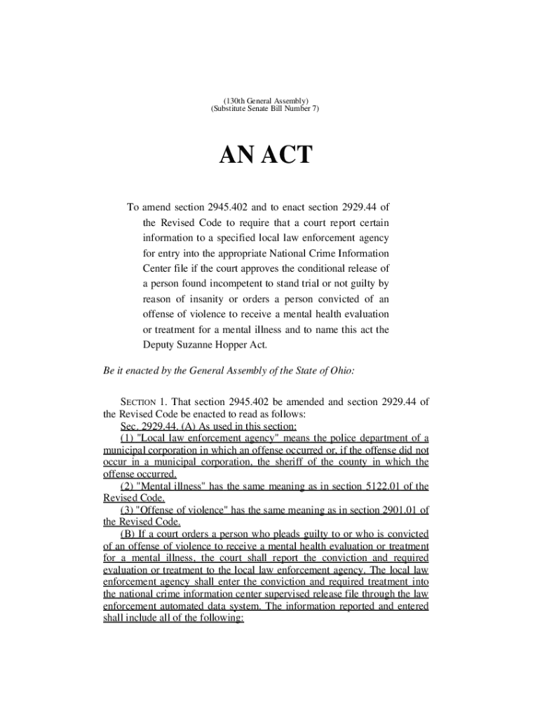 (130th General Assembly) (Substitute Senate Bill Number 7)AN ACT To amend section 2945.402 and to enact section 2929.44 of the Revised Code to require that a court report certain information to a