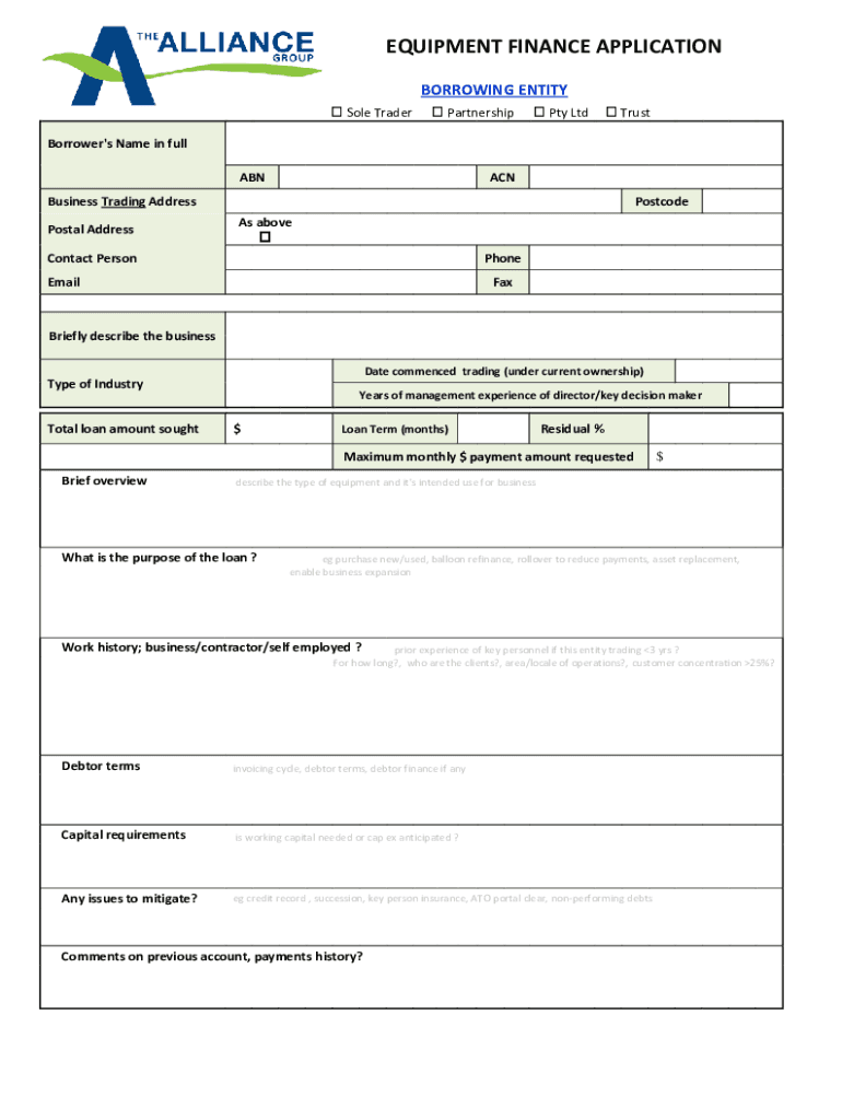 EQUIPMENT FINANCE APPLICATION