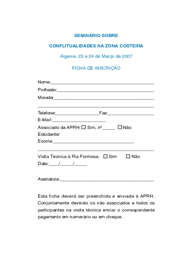 Obtenha o gratuito Ficha de inscrio - APRH