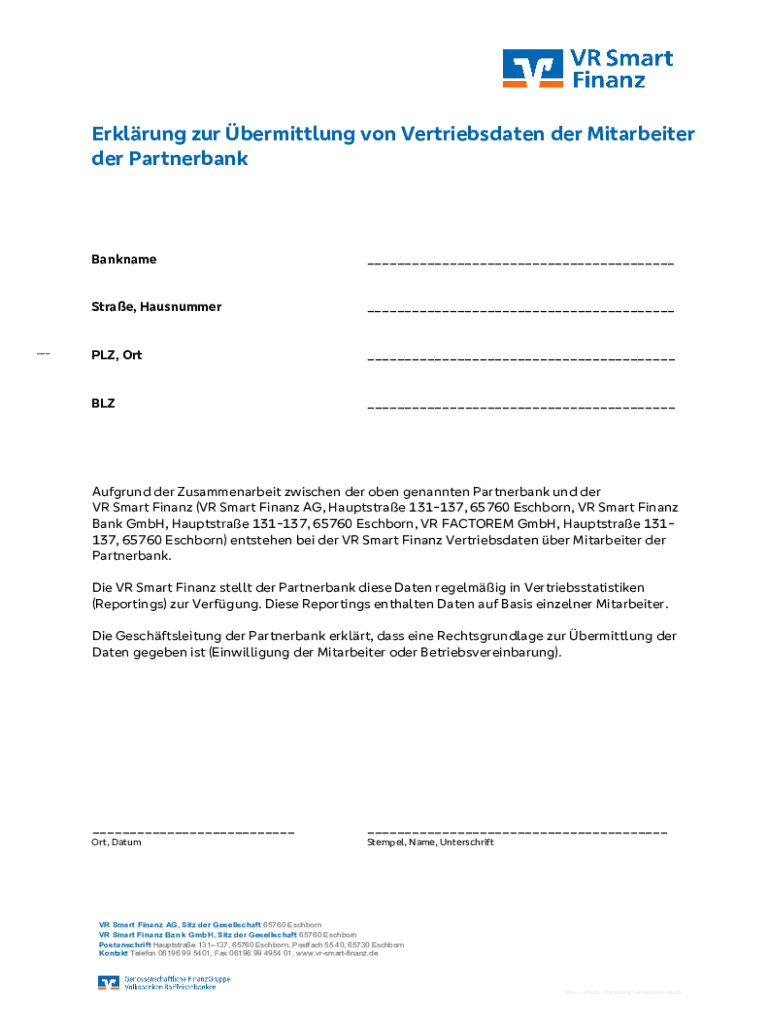 her PartnerbankBankname___Strae, Hausnummer___PLZ, Ort___BLZ___Aufgrund her Zusammenarbeit Wijchen her open tenanted Partner bank UND her