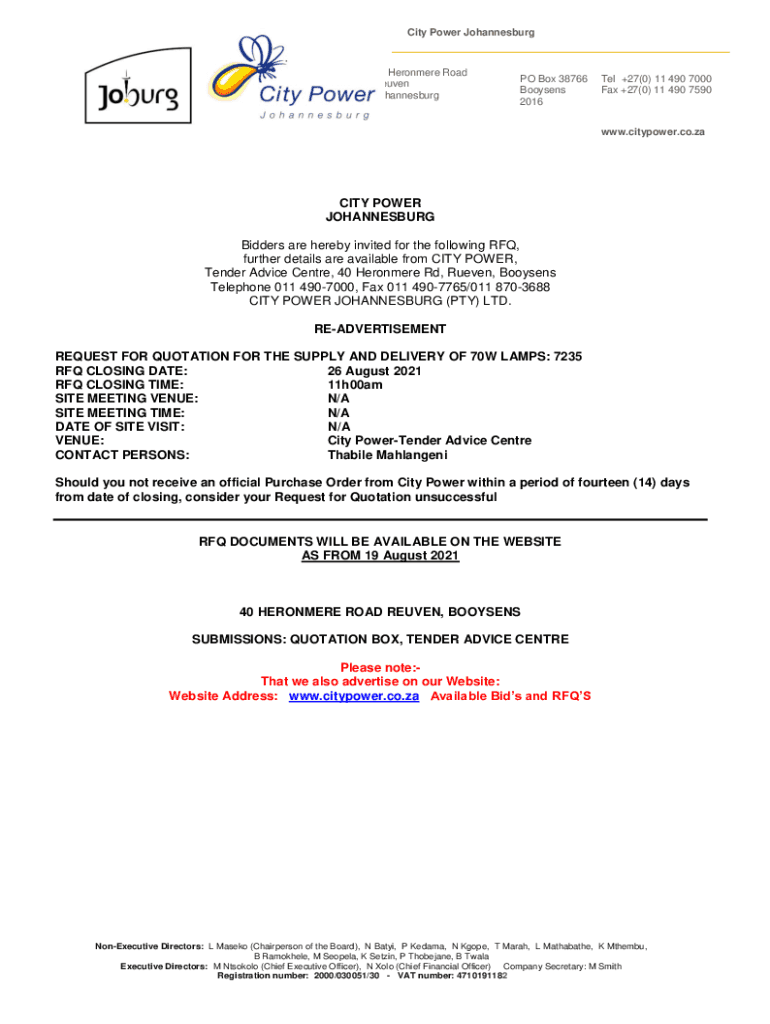 Fax +27(0) 11 490 7590www.city power.co.city POWER