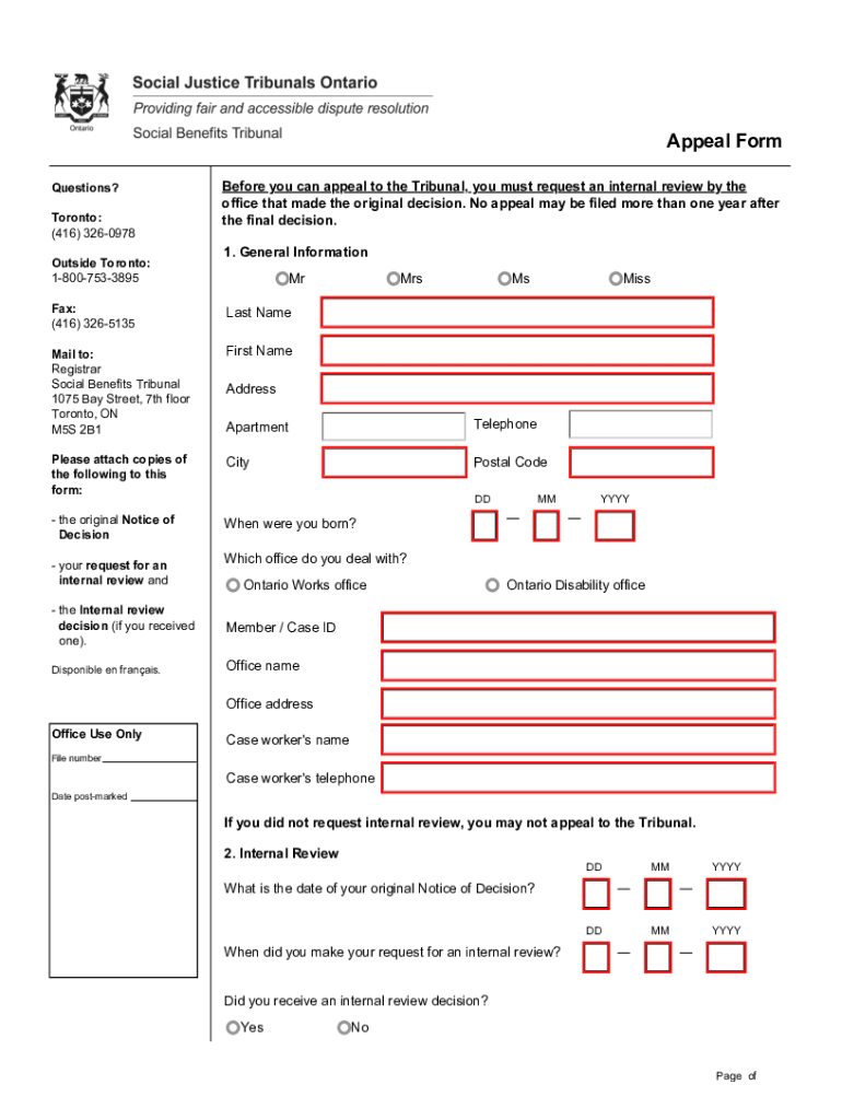 To fill out the social benefits tribunal form, applicants need to provide their personal information, details about the decision being contested, the reasons for the appeal, and any supporting documentation.