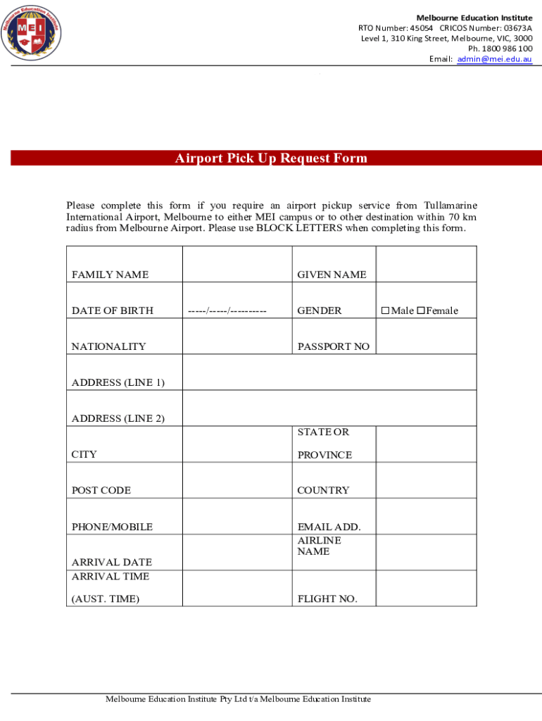 H\'I8+ IJ\'K\')E)J&EI&Airport Pick Up Request Form