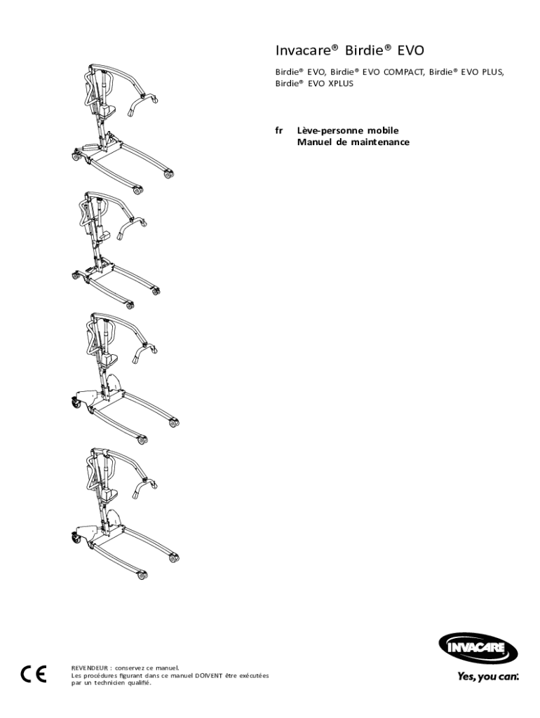 Obtenir le gratuit Invacare Birdie EVO PLUS patient lifter
