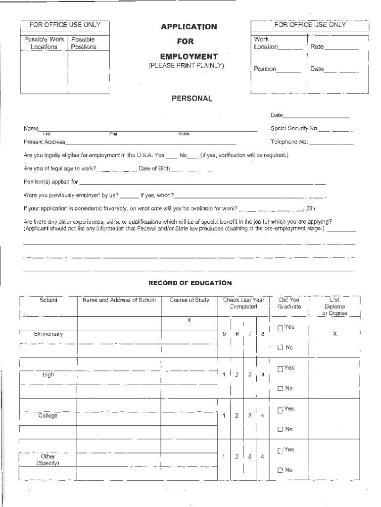 The application typically requires personal details such as name, address, contact information, work history, educational background, and references.