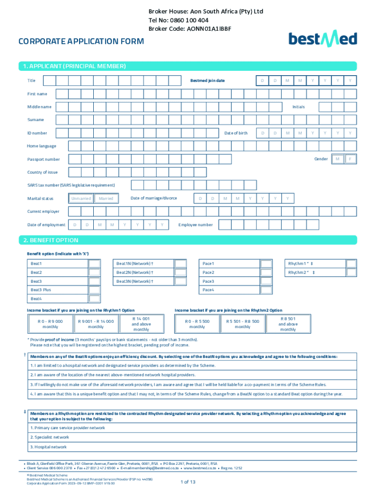 Broker House: Aon South Africa (Pty) Ltd Tel No: 0860 100 404 Broker Code: AONN01A1IBBFCORPORATE APPLICATION FORM 1. APPLICANT (PRINCIPAL MEMBER) Bested join dateTitleDDMMYYYYYYYYGenderMFFirst name