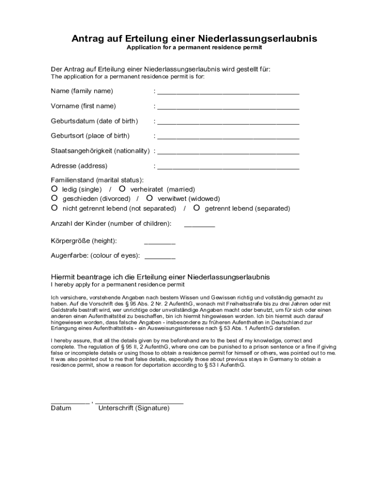 Application for a permanent residence permitted Ant rag AUF Derailing anger Niederlassungserlaubnis word Estelle for: