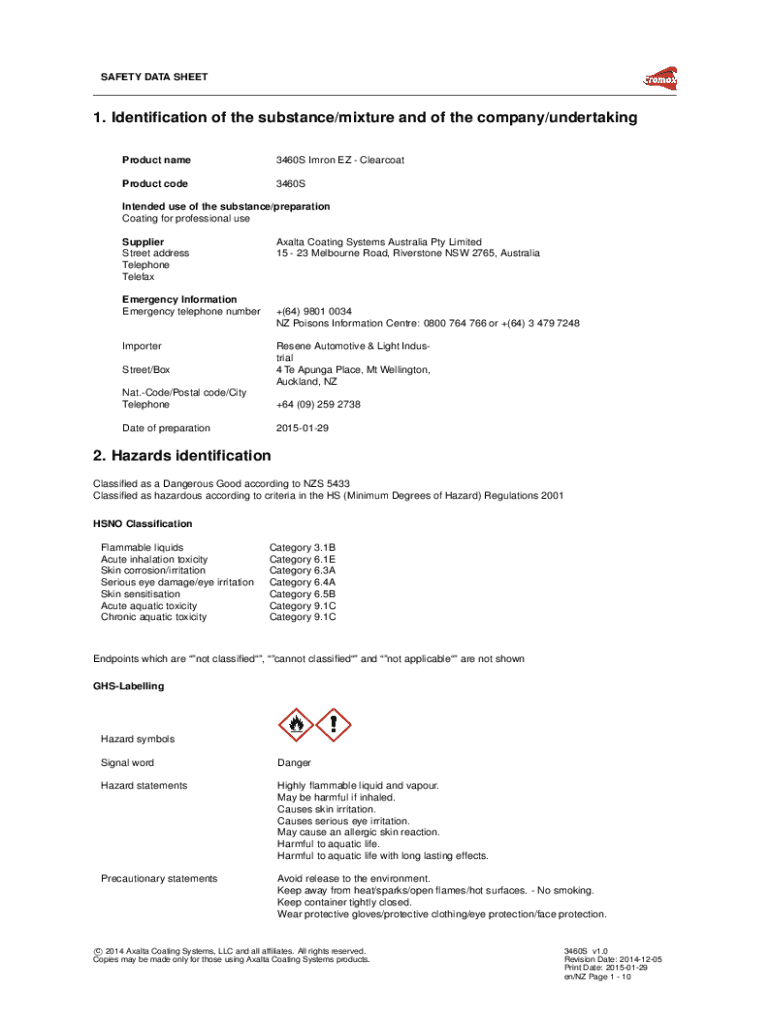 Product name3460S Iron EZ ClearcoatProduct code3460SIntended use of the substance/preparation