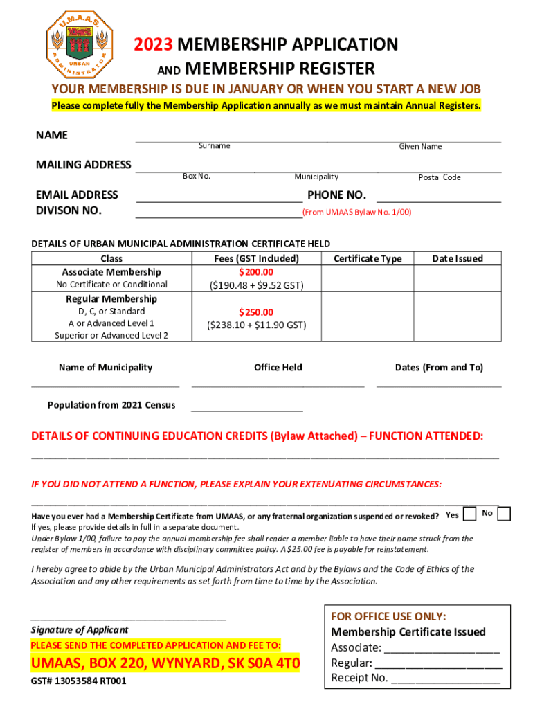 2023 MEMBERSHIP APPLICATION