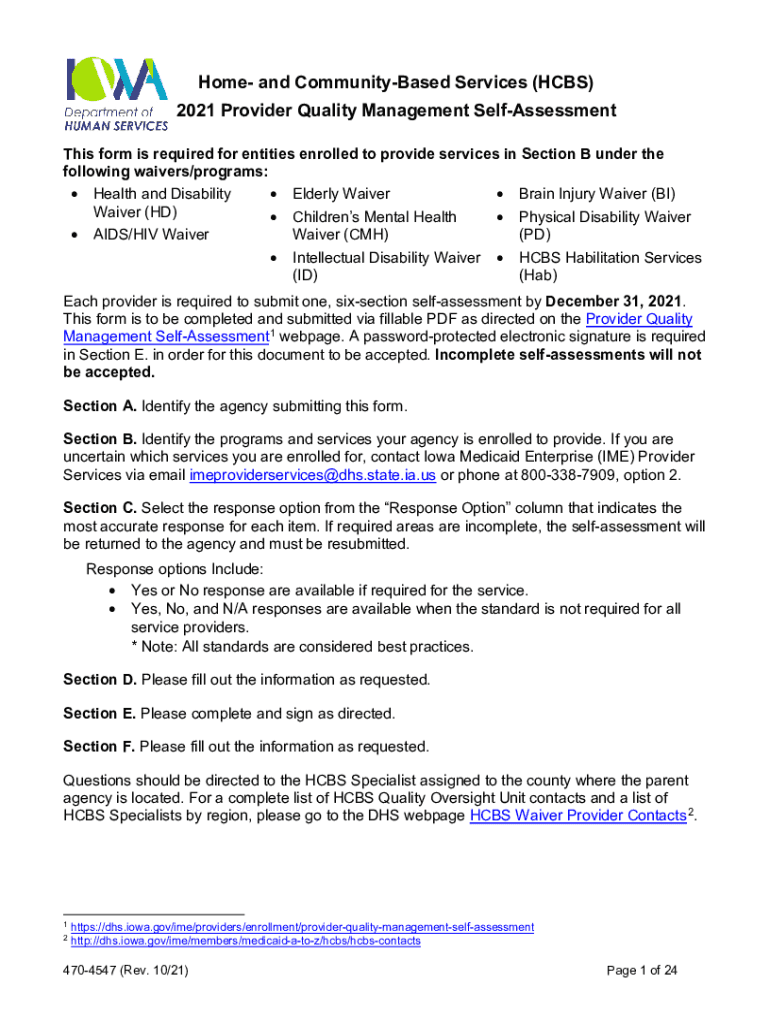 Home and CommunityBased Services (HUBS) 2021 Provider Quality Management Reassessment This form is required for entities enrolled to provide services in Section B under the following waivers/programs: