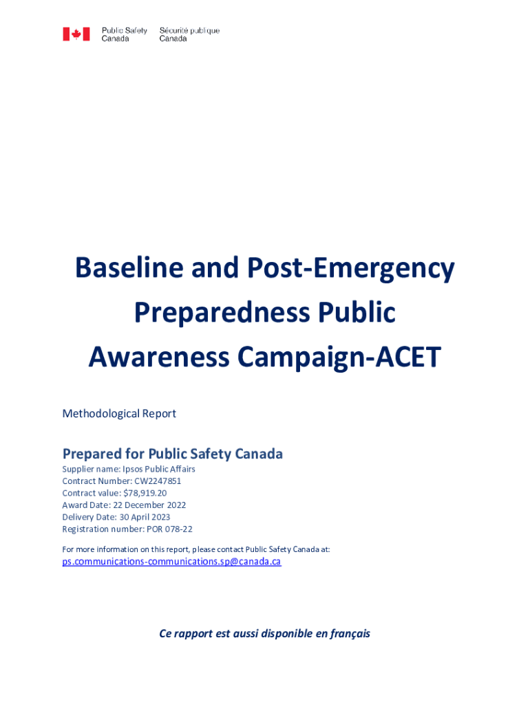 Get the free Baseline and Post-Emergency Preparedness Public Awareness ... - publications gc