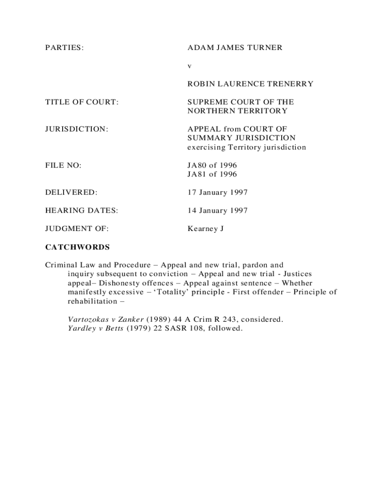 Get the free PARTIES: ADAM JAMES TURNER v ROBIN LAURENCE ... - supremecourt nt gov