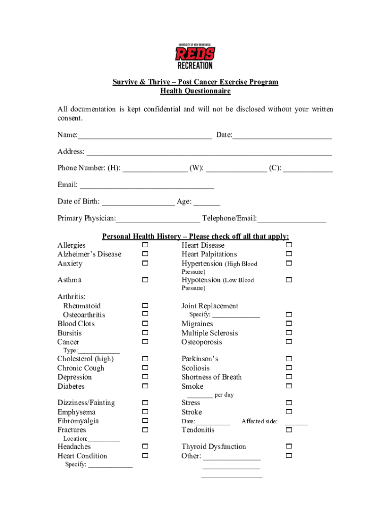 Get the free Post Cancer Exercise Program Health Questionnaire