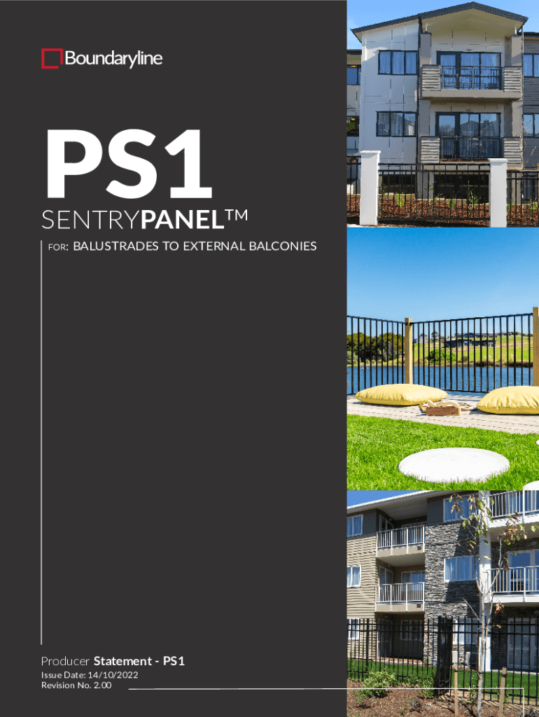 PS1SENTRYPANELTM for:BALUSTRADES TO EXTERNAL BALCONIESProducer Statement PS1 Issue Date: 14/10/2022 Revision No. 2.00Terranota Limited Sentry Panel Balustrades to External Balconies Building Consent