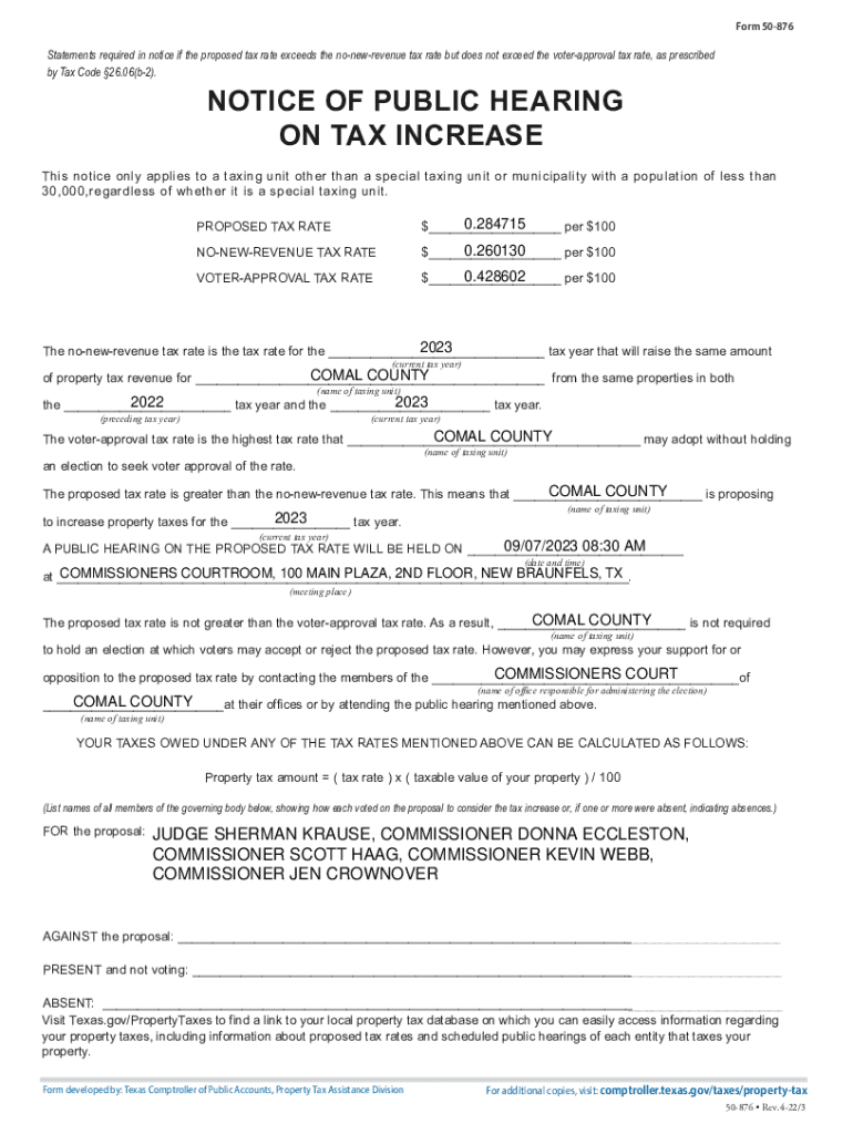 Get the free Notice of Public Hearing on Tax Increase - Comal County