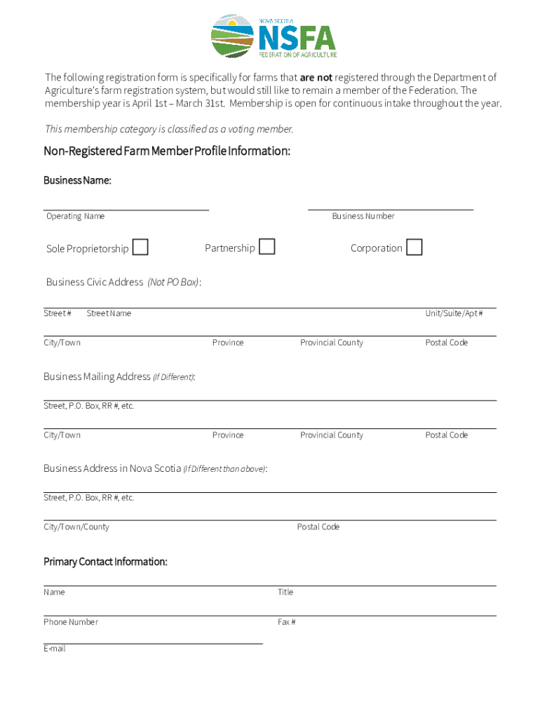 Non-Registered Farm Member Application is not the form you're looking for?Search for another form here.
