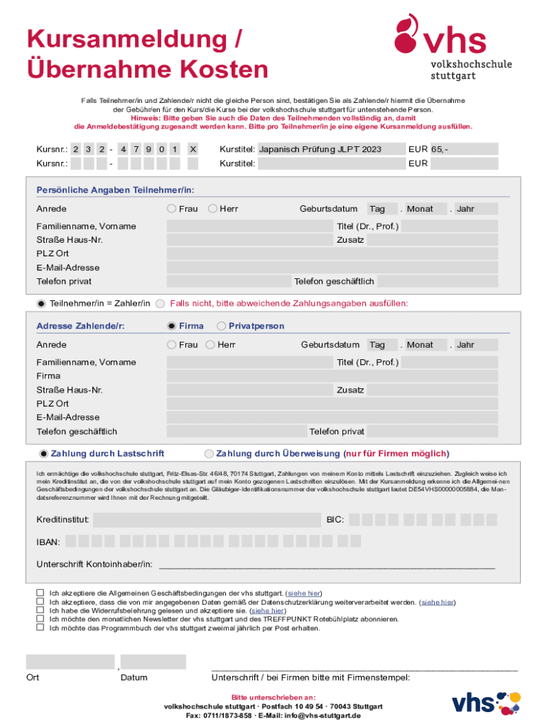 Dieses Formular kann Felder für Zahlungsinformationen enthalten. Daten, die in diese Felder eingegeben werden, fallen nicht unter die PCI DSS-Compliance.
