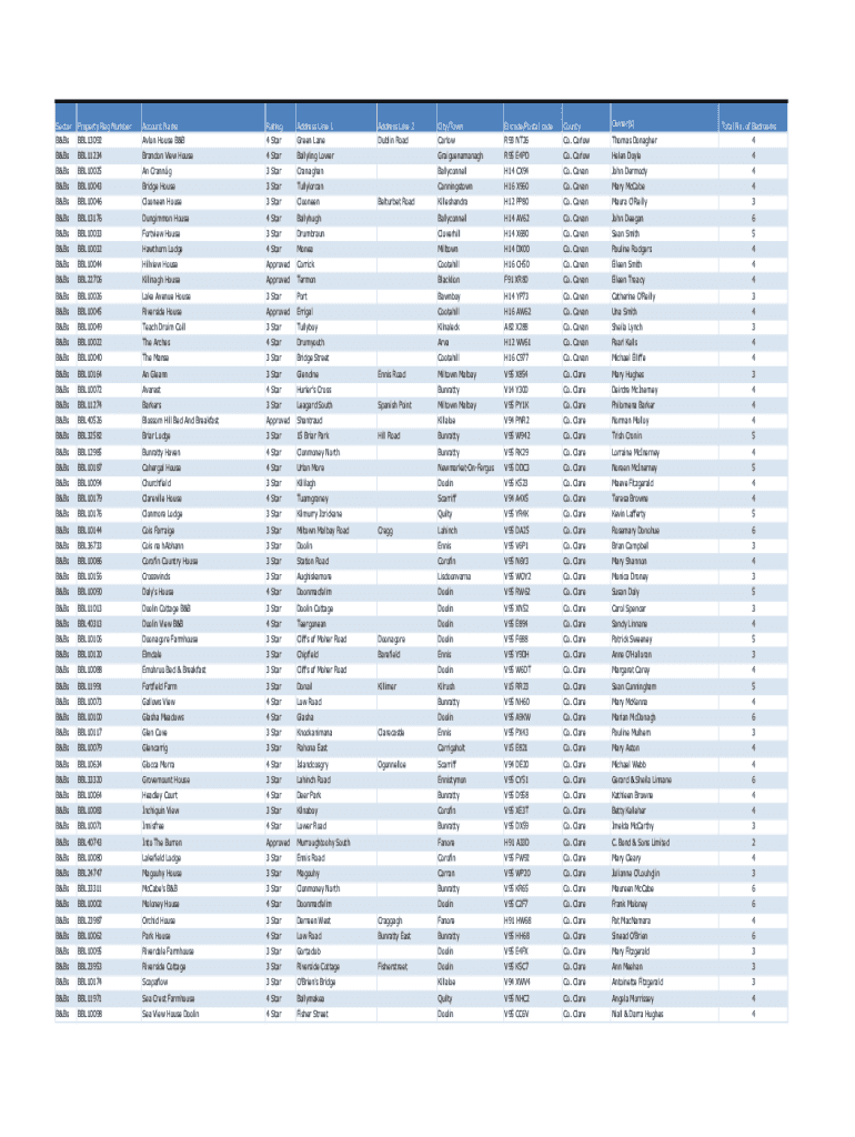 City/Town CarlowEircode/Postal code R93 NT26County Co. CarlowOwner(s)Bally ling LowerGraiguenamanaghR95 E4PDCo. CarlowHelen Doyle4CranaghanBallyconnellH14 CX94Co. CavanJohn Dermody43 StarTullylorcanCanningstownH16