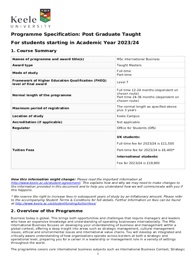 Program Specification: Post Graduate Taught For students starting in Academic Year 2023/24 1. Course Summary Names of program and award title(s)M.Sc. International BusinessAward retaught Masterstroke