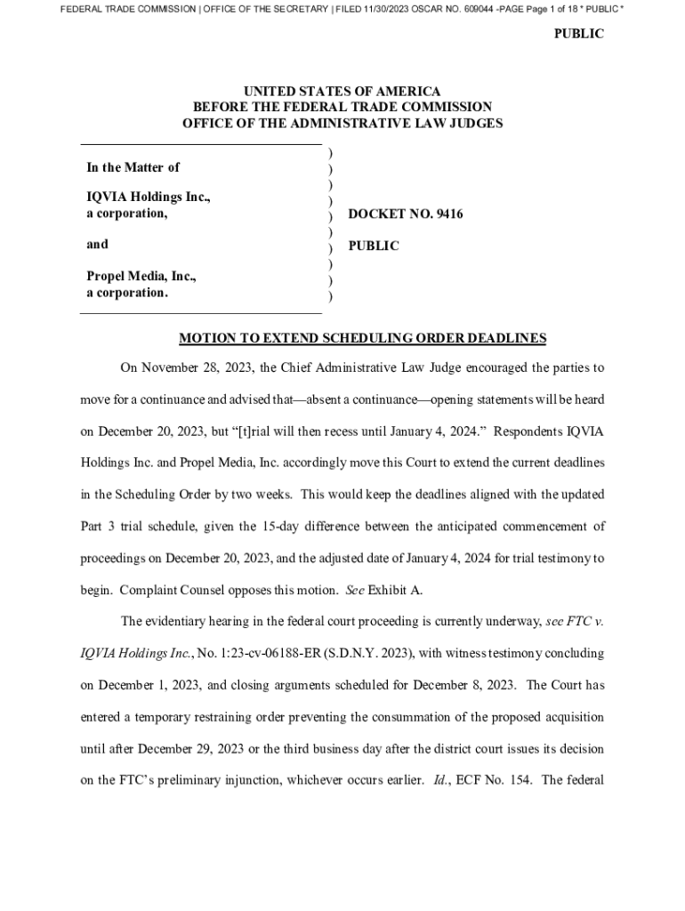 FEDERAL TRADE COMMISSION | OFFICE OF THE SECRETARY | FILED 11/30/2023 OSCAR NO. 609044-PAGE Page 1 of 18 * PUBLIC *PUBLICIZED STATES OF AMERICA BEFORE THE FEDERAL TRADE COMMISSION OFFICE OF THE ADMINISTRATIVE