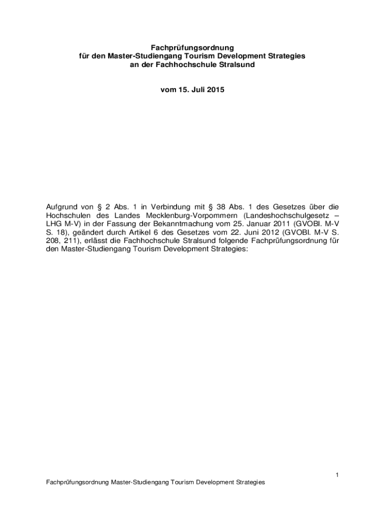 a her Fachhochschule Stralsund 15. July 2015Aufgrund on 2 Abs. 1 in Rebinding MIT 38 Abs. 1 DES Reserves BER die