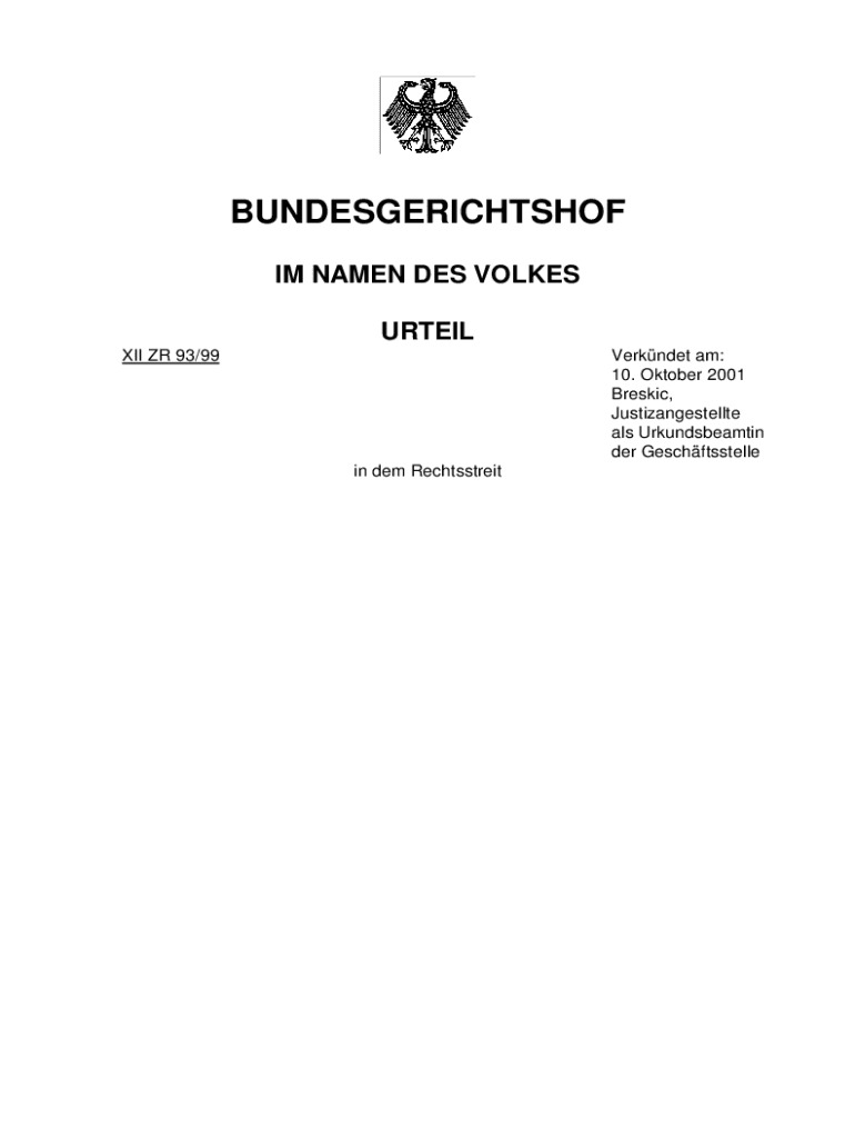 XII ZR 93/99URTEILin them RechtsstreitVerkndet am: