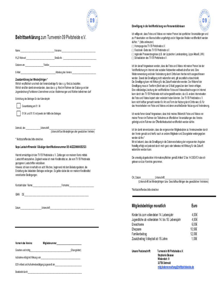 Wie fülle ich beitragsordnung des turnverein 09 aus?