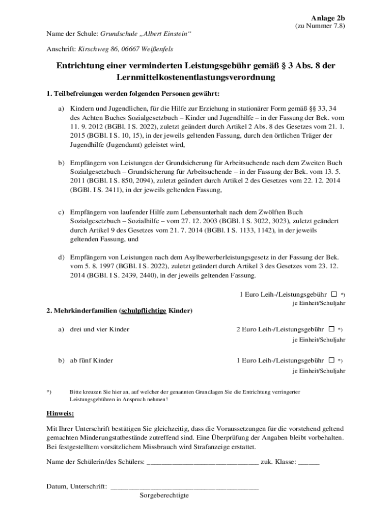Antichrist: Kirsches 86, 06667 WeienfelsEntrichtung anger verminderten Leistungsgebhr gem 3 Abs. 8 her