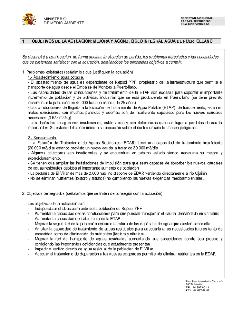 Y LA BIODIVERSIDADOBJETIVOS DE LA ACTUATION: MAJOR Y AC OND. CIC LO INTEGRAL AGRA DE PUERTOLLANOSe describer a continuation, de form