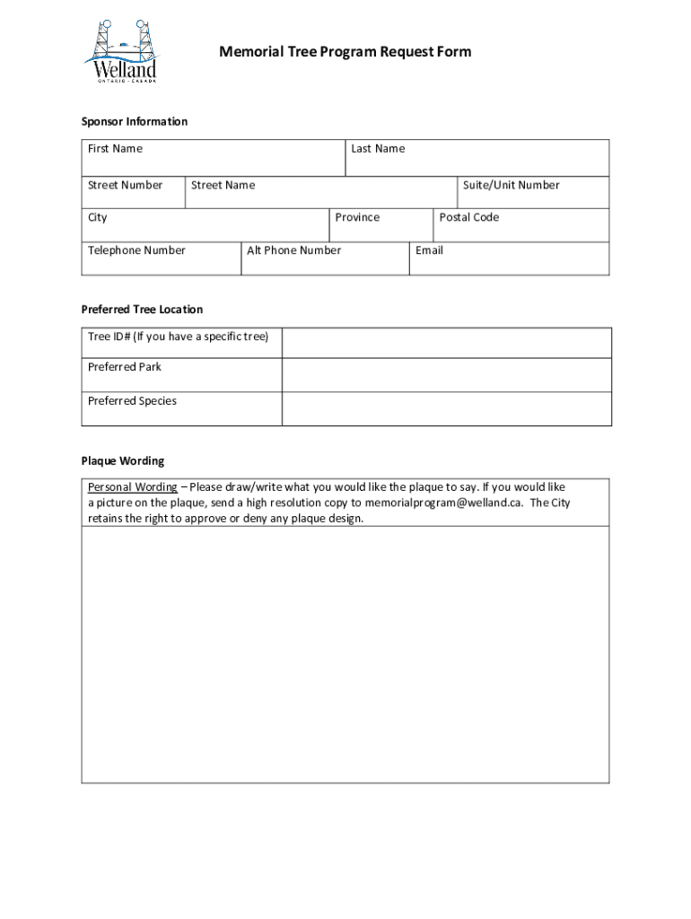 Memorial Tree Program Request Cosponsor Information First Name Street Numberless Name Street Amenity Telephone NumberSuite/Unit Number Provincial Phone NumberPostal Code EmailPreferred Tree Location