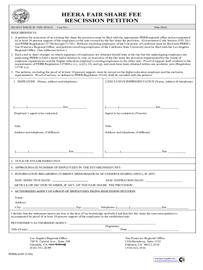 HERA FAIR SHARE FEE RESCISSION PETITION DO NOT WRITE IN THIS SPACE:Case No.:Date Filed:REQUIREMENTS: 1. A petition for rescission of an existing fair share fee provision must be filed with the appropriate