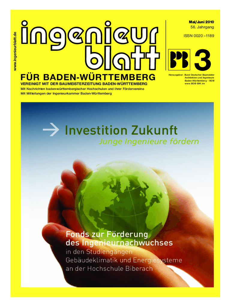 121 Titelseite.qxd:121 Titelseite.qxd04.08.201016:45 UhrSeite 1www.ingenieurblatt.deMai/Juni 2010 56. Jahrgang ISSN 0020 1189FR BADENWRTTEMBERG VEREINIGT MIT DER BAUMEISTERZEITUNG BADENWRTTEMBERG3Herausgeber: