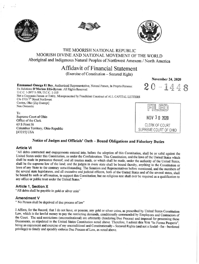 Get the free Tl-IE MOORISH NATIONAL REPUBLIC Affidavit of Financial Statement