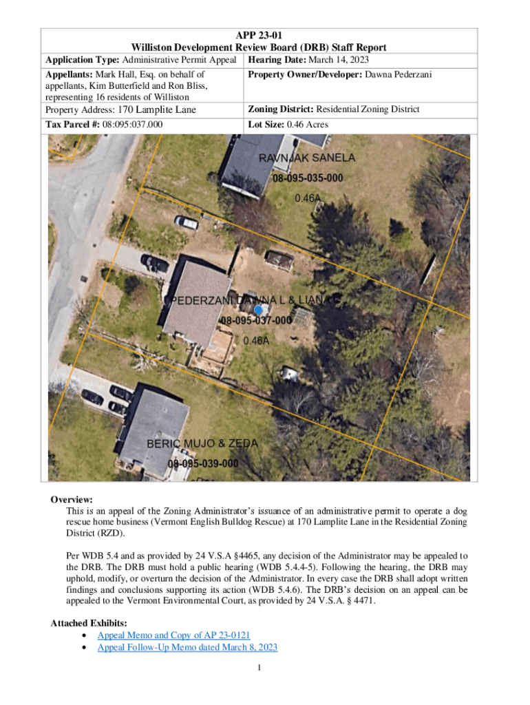 Get the free Town of Williston DRB Hearing- Appeal of Permit AP 23-0121 ...